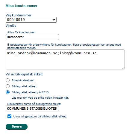 Under "Mina Sidor" så har du möjlighet att ställa in vilken typ av streckkodsetikett du önskar på dina böcker.